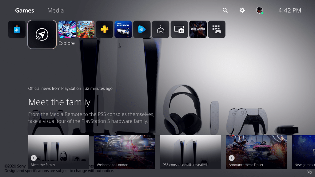 He also iterated that media functions and content will have a similar main screen for themselves and the main one is purely for gaming. Or that’s how I understood it. Lastly, he showed off the “explore” tab that contains PlayStation news. Hope we get on there someday. Wishful thinking I know. And this feature is available on in the US at launch, it will have region dependant information I guess.